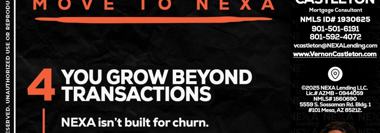 Hi, my name is K. Vernon Castleton. I’m a Loan Officer with NEXA Lending LLC., offering personalized mortgage solutions, fast customized quotes, great rates and service with integrity.