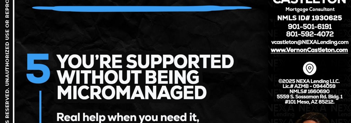 Hi, my name is K. Vernon Castleton. I’m a Loan Officer with NEXA Lending LLC., offering personalized mortgage solutions, fast customized quotes, great rates and service with integrity.