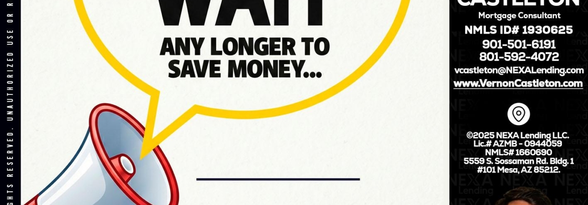 DONT WAIT - K. Vernon Castleton -Mortgage ConsultantHi, my name is K. Vernon Castleton. I’m a Loan Officer with NEXA Lending LLC., offering personalized mortgage solutions, fast customized quotes, great rates and service with integrity.