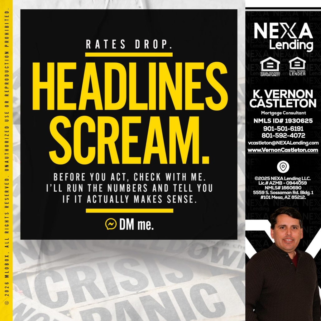 Hi, my name is K. Vernon Castleton. I’m a Loan Officer with NEXA Lending LLC., offering personalized mortgage solutions, fast customized quotes, great rates and service with integrity.