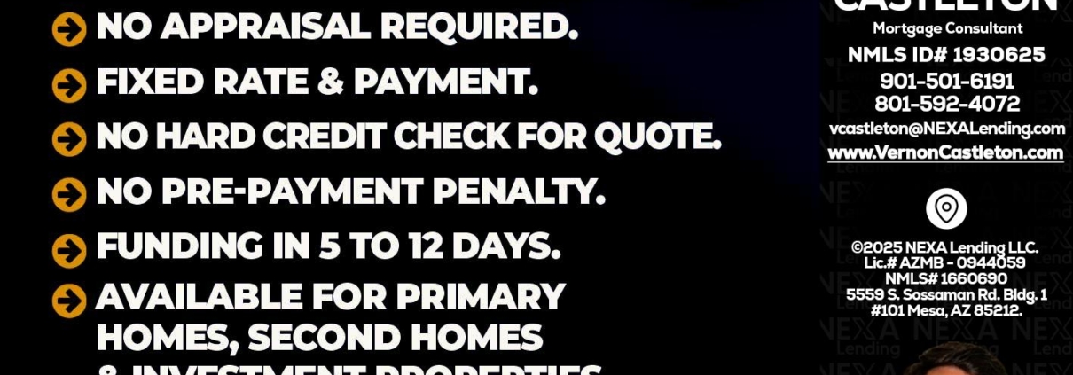 Hi, my name is K. Vernon Castleton. I’m a Loan Officer with NEXA Lending LLC., offering personalized mortgage solutions, fast customized quotes, great rates and service with integrity.