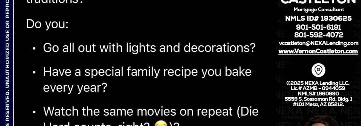 Hi, my name is K. Vernon Castleton. I’m a Loan Officer with NEXA Lending LLC., offering personalized mortgage solutions, fast customized quotes, great rates and service with integrity.