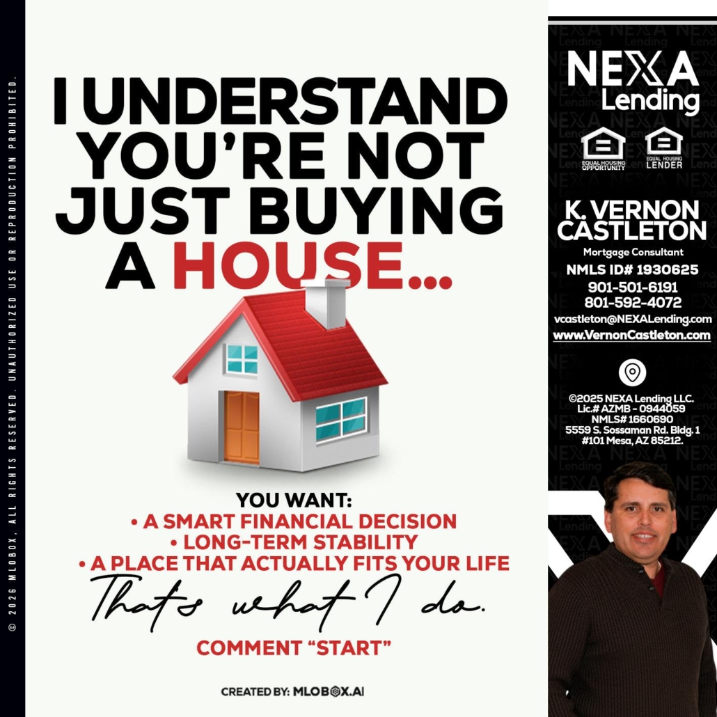 Hi, my name is K. Vernon Castleton. I’m a Loan Officer with NEXA Lending LLC., offering personalized mortgage solutions, fast customized quotes, great rates and service with integrity.