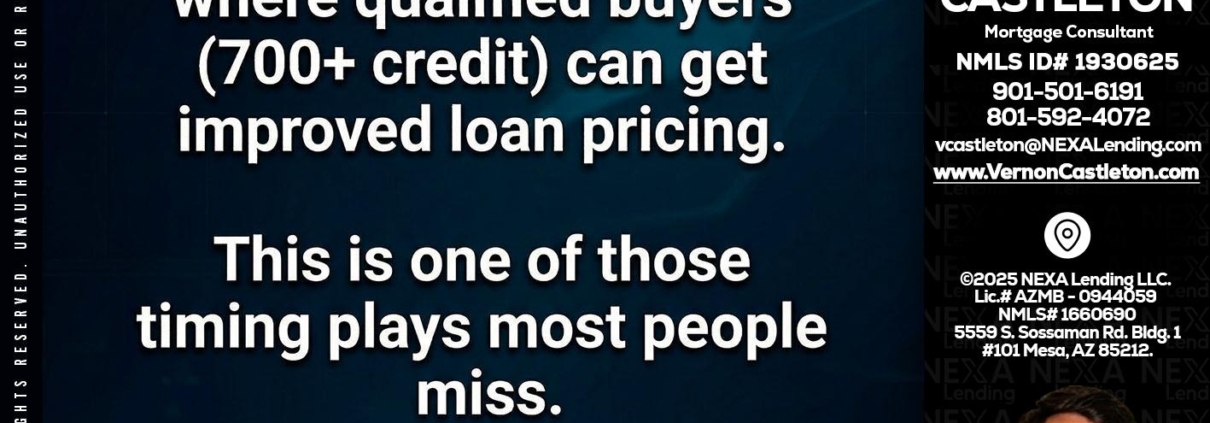 Hi, my name is K. Vernon Castleton. I’m a Loan Officer with NEXA Lending LLC., offering personalized mortgage solutions, fast customized quotes, great rates and service with integrity.