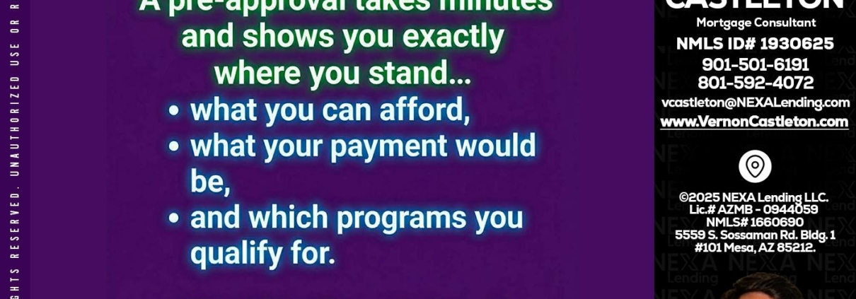 Hi, my name is K. Vernon Castleton. I’m a Loan Officer with NEXA Lending LLC., offering personalized mortgage solutions, fast customized quotes, great rates and service with integrity.