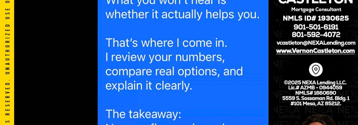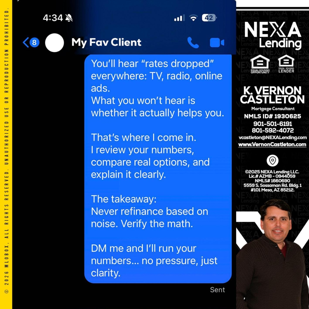 MY FAV CLIENT - K. Vernon Castleton -Mortgage ConsultantHi, my name is K. Vernon Castleton. I’m a Loan Officer with NEXA Lending LLC., offering personalized mortgage solutions, fast customized quotes, great rates and service with integrity.
