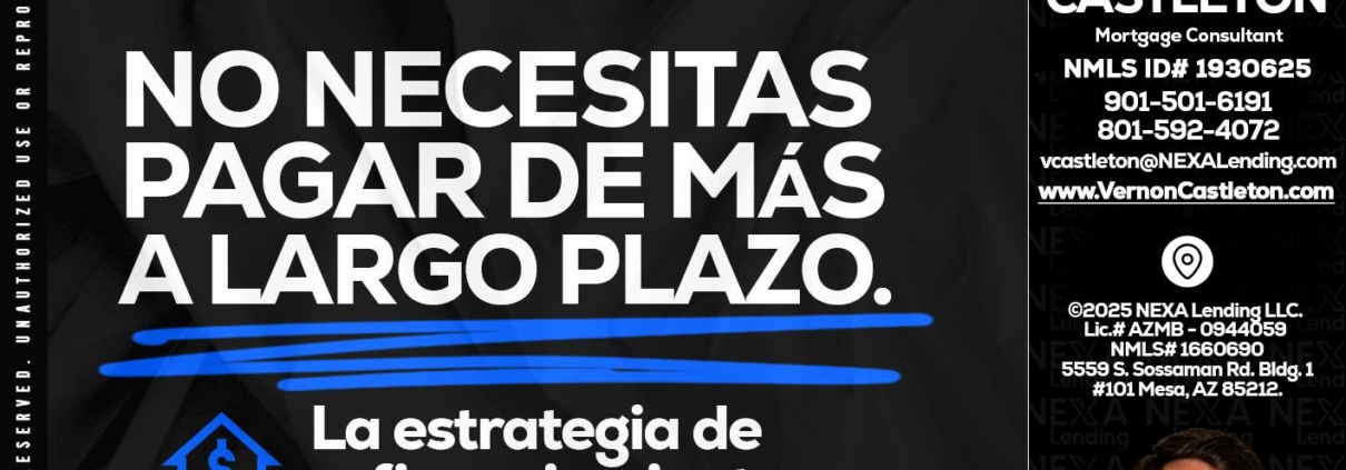 NO NECESITAS MAS - K. Vernon Castleton -Mortgage ConsultantHi, my name is K. Vernon Castleton. I’m a Loan Officer with NEXA Lending LLC., offering personalized mortgage solutions, fast customized quotes, great rates and service with integrity.