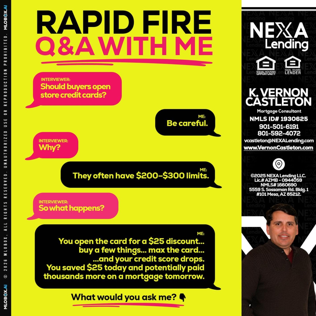 RAPID FIRE Q&A - K. Vernon Castleton -Mortgage ConsultantHi, my name is K. Vernon Castleton. I’m a Loan Officer with NEXA Lending LLC., offering personalized mortgage solutions, fast customized quotes, great rates and service with integrity.