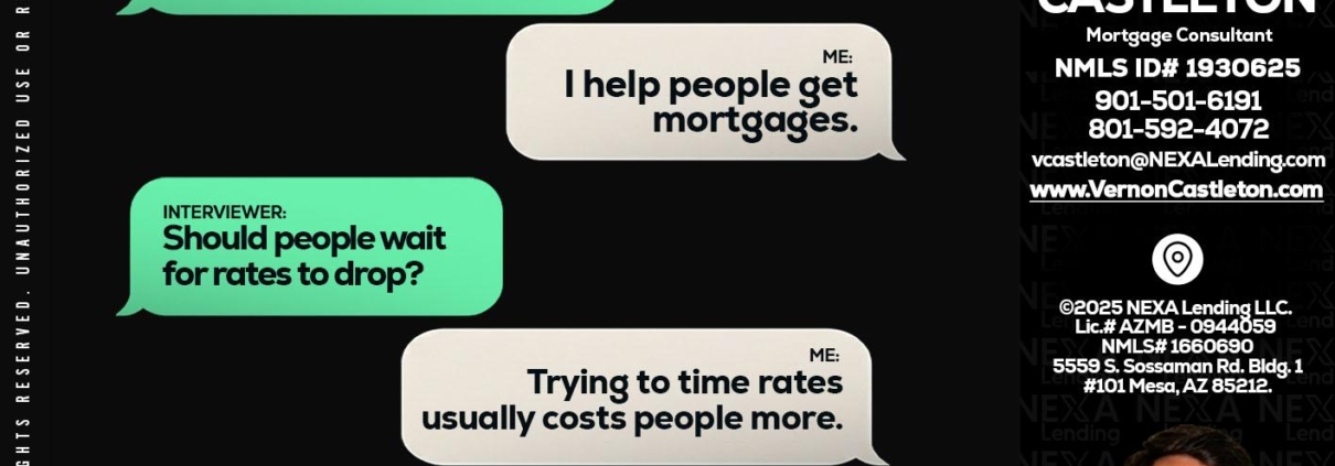 Hi, my name is K. Vernon Castleton. I’m a Loan Officer with NEXA Lending LLC., offering personalized mortgage solutions, fast customized quotes, great rates and service with integrity.