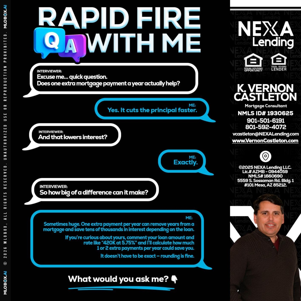 Hi, my name is K. Vernon Castleton. I’m a Loan Officer with NEXA Lending LLC., offering personalized mortgage solutions, fast customized quotes, great rates and service with integrity.