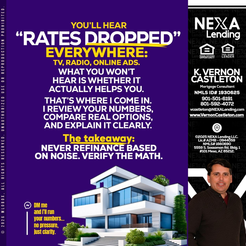 Hi, my name is K. Vernon Castleton. I’m a Loan Officer with NEXA Lending LLC., offering personalized mortgage solutions, fast customized quotes, great rates and service with integrity.