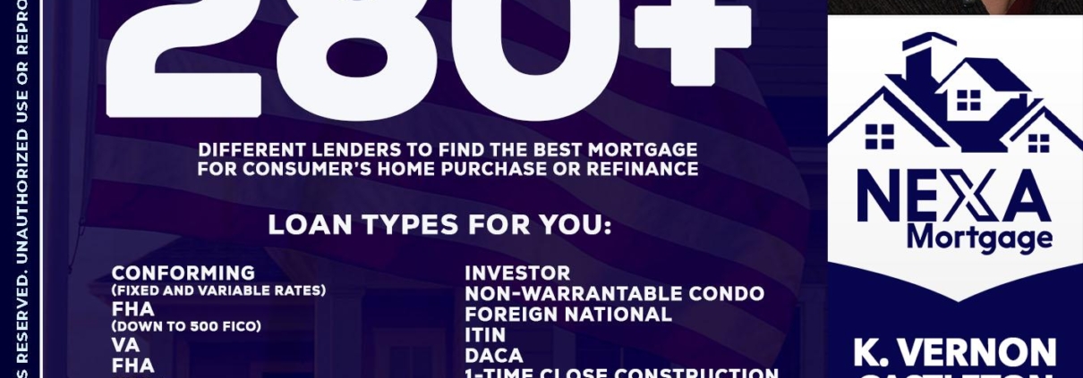 Hi, my name is K. Vernon Castleton. I’m a Loan Officer with NEXA Mortgage LLC., offering personalized mortgage solutions, fast customized quotes, great rates and service with integrity.
