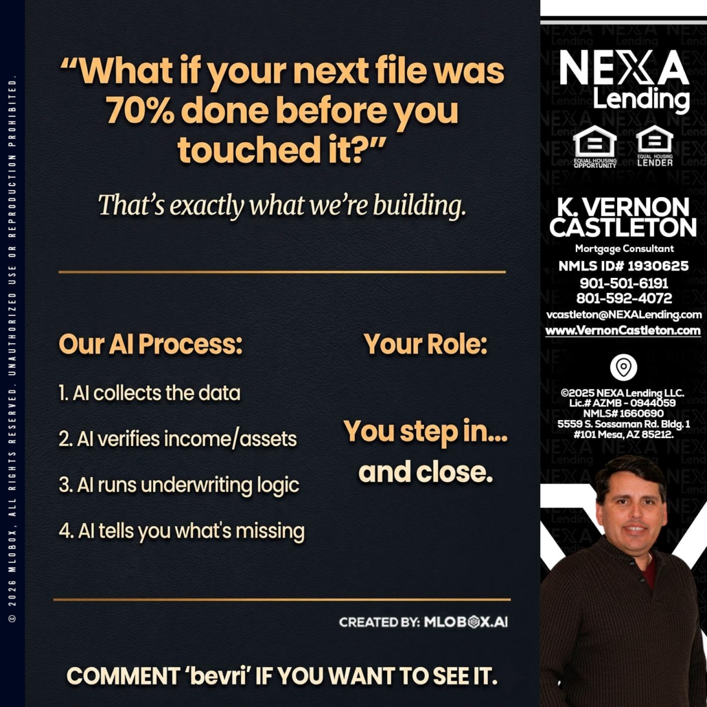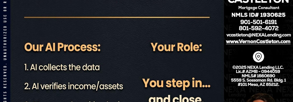 Hi, my name is K. Vernon Castleton. I’m a Loan Officer with NEXA Lending LLC., offering personalized mortgage solutions, fast customized quotes, great rates and service with integrity.